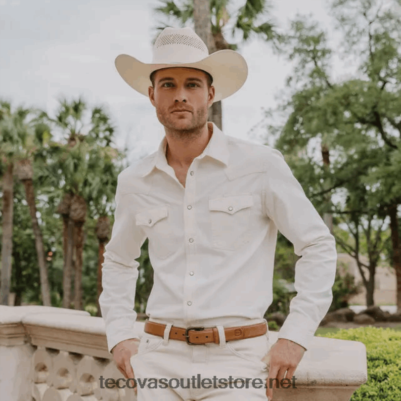 Tecovas erkekler denim inci çıtçıt 884B20 doğal