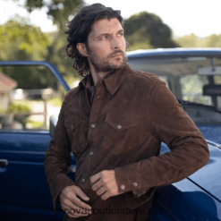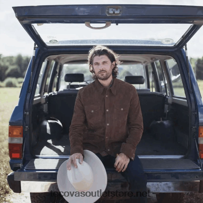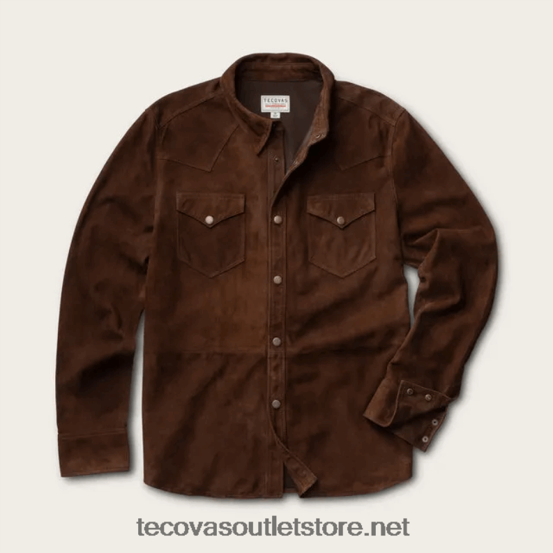 Tecovas erkekler keçi süet ince ceket 884B11 Kahve