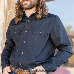 Tecovas erkekler pamuklu dimi düğme aşağı 884B46 odun kömürü