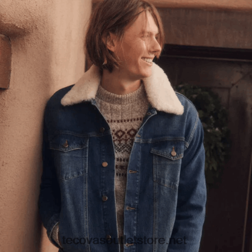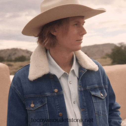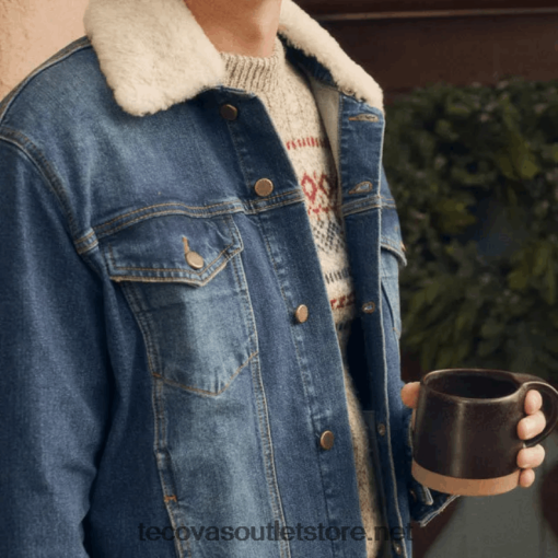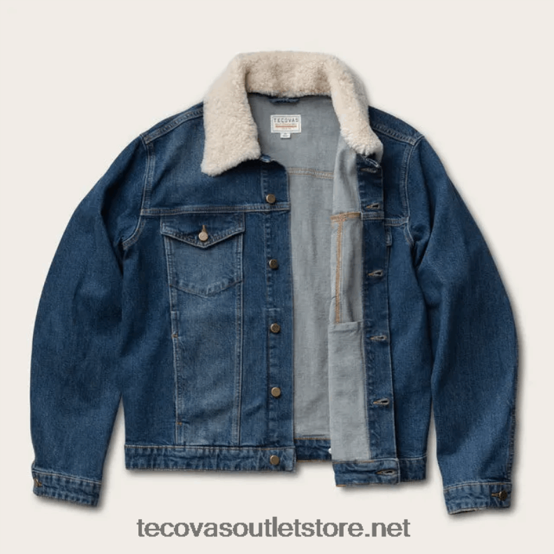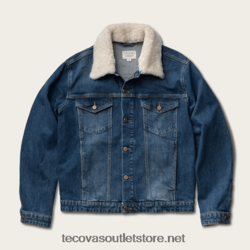Tecovas erkekler yünlü denim trucker ceket 884B28 orta mavi