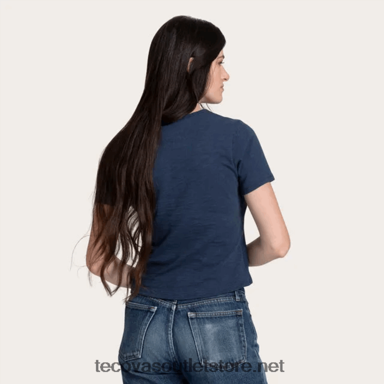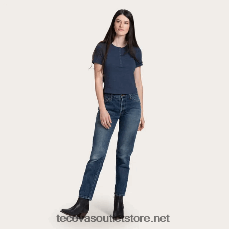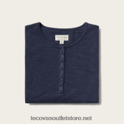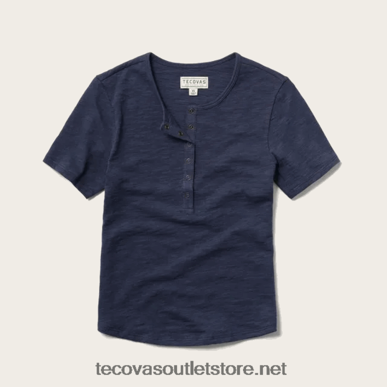 Tecovas kadınlar kısa kollu pamuklu şantuk henley 884B155 yıkanmış donanma
