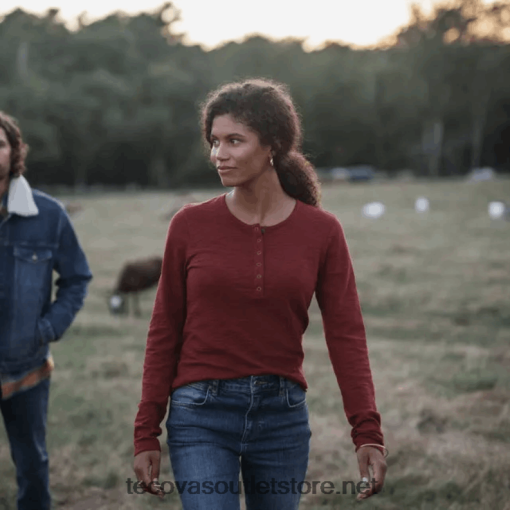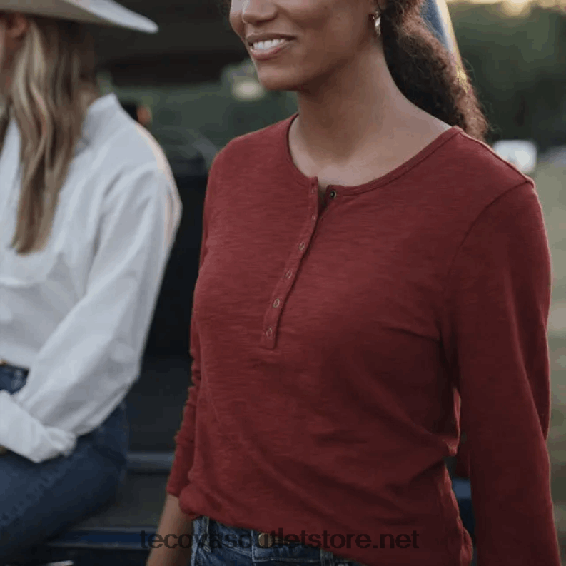 Henley uzun zamandır batı gardırobunun temel parçalarından biri olmuştur ve şimdi özel bir bayan kesimi ve geniş yakasıyla burada. Uzun kollu pamuklu şantuk henley, vücuda yapışmayı en aza indiren doğal çekici bir döküme sahip, havadar bir his için %100 pamuktan yapılmıştır. güçlendirilmiş altı çıtçıtlı patı, favori olmaya aday klasik bir çok katmanlı parçayı tamamlıyor.